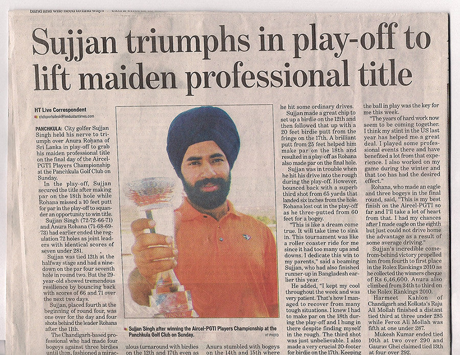 Sujjan’s incredible golf propelled him to pick up the winners cheque of Rs 650,000 and became India’s No. 1 Professional Golf Tour of India player, defeating Mukesh Kumar, SSP Chowrasia, Anura Rohana, R. Murthy, Manav Jaini, Om Prakash Chouhan, Sanjay Kumar and Harmeet Kahlon.