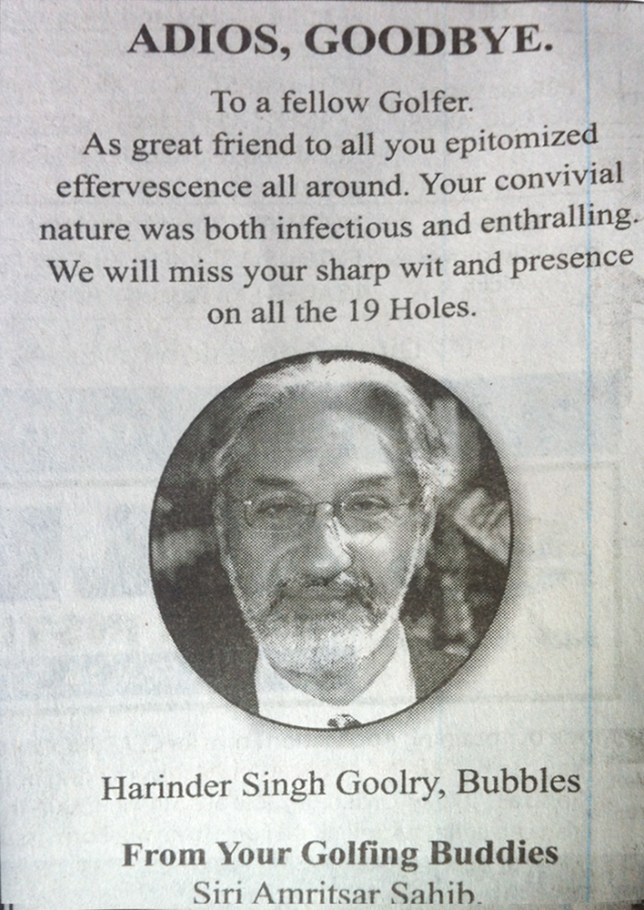 We sadly announce the passing away of Old Cottonians Harinder Singh GOOLRY [Bubbles] at Amritsar. Here is a clipping from The Tribune [Chandigarh edition] of March 24th 2013