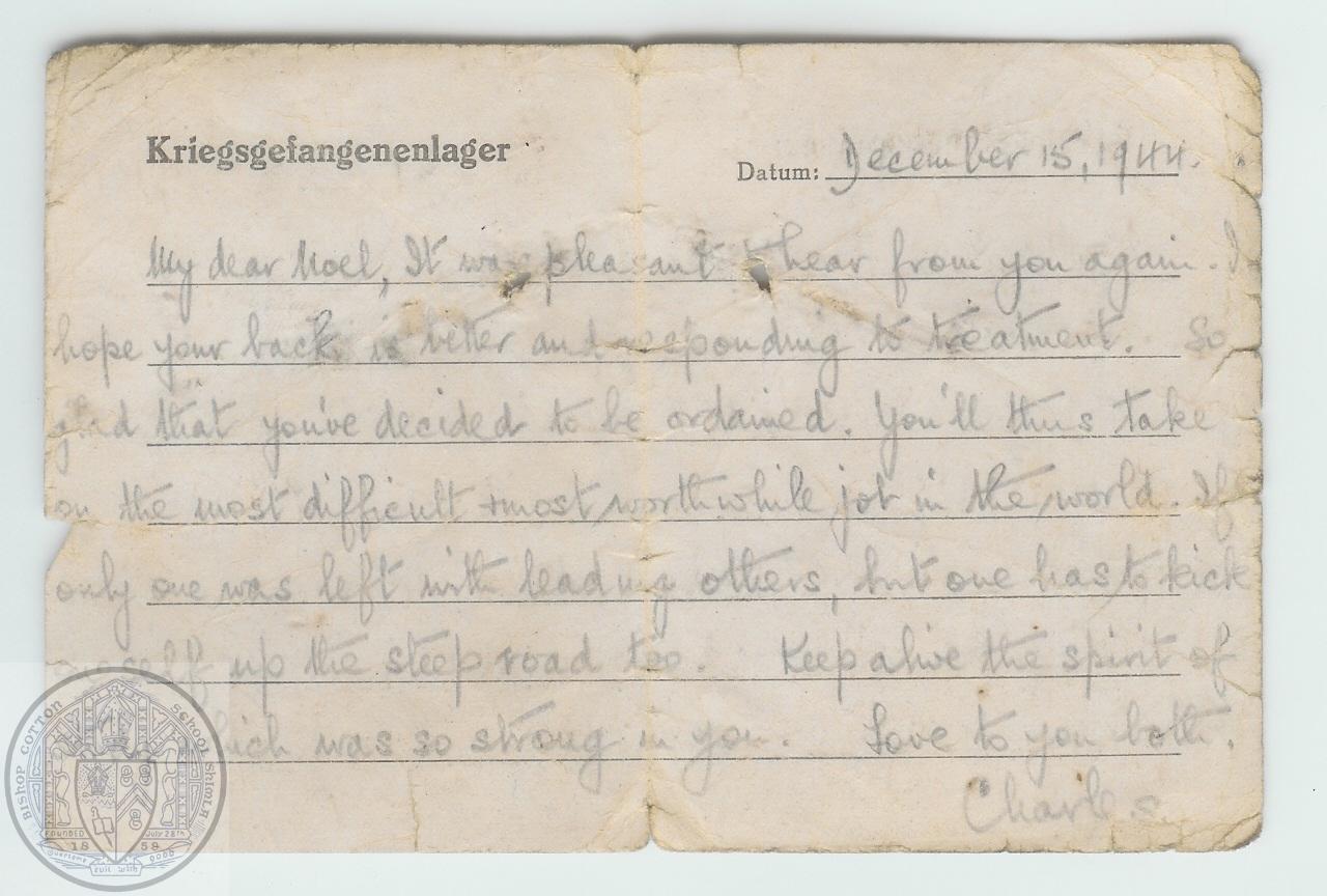Attached is a letter from Mike King’s father, Charles King, to his youngest brother Noel who left BCS in 1934 to move to England with his parents. He was a Captain in the British Airborne Forces and saw action at the Battle of Arnhem and was actually present at the Japanese surrender in Rangoon in 1945.Love, terrible Wars…and then Peace….Finally a Servant of the AlmightyAmen