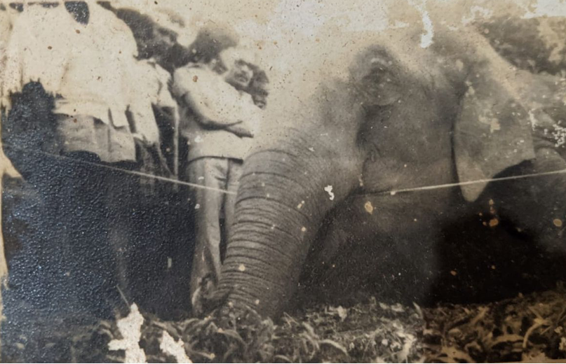 Leaving the club post a hearty dosa breakfast, still in my formal dinner attire, I rode into Panniar just in time for my morning muster at 7 a.m. As the workers trickled in, they were assigned their work for the day and headed off to the allocated fields. Around 0800 Hrs, by which time normally all the workers should have reported for work, my conductor Mr Balia (Incidentally NEVER Balia – always Mr Balia) remarked that he found it rather strange that not a single worker from the No.5 line had come in for work. Odd indeed. So I got on to my bike and heading off towards the lines. Nearing the lines I noticed a whole lot of workers and kids sitting on the roofs of their houses. Seeing me they started shouting that I shouldn’t come any further since there was an elephant sitting in the middle of road.