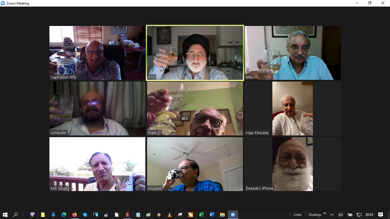 Over the last few weeks we have been, at the initiative of Anupam Sachdev, holding a few chat sessions over Zoom. The first one had just about the four of us and the second one three weeks later saw the number of participants rise to five, which included Arun Kochhar. Yesterday, there were many more as the accompanying picture testifies. Not included in the screenshot by KS Dugal were Guljit Kochhar, who left early and Param Inder Singh who somehow went missing when this shot was taken.The last session was held yesterday, Sunday 16th Aug at 8:00PM (IST), which is the time for drinks in India and coffee time for most in the US. It was that time of the day when Arun Jolly in LA is usually in his night gear having just woken up to his first cup of tea but bright and sparkling. Ken Singh & Param in Colorado were up and cheerful. Those in India faithfully exhibited their brand of alcohol and settled down to a lovely evening.We did try to rope in Rishi in Adelaide and when it would have been mid-night but he sent a message of apology that due to age and aging considerations he went to bed at 9:30PM. Had he joined in can you imagine our conversation would have encompassed a huge part of the globe!! Modern technology, we never imagined, is available over such a large geographical sweep.Last evening turned out to be truly enjoyable with eminently interesting speakers like BM and Bittu.Warmly,Vijay [Khurana]