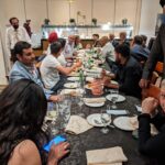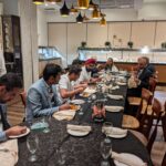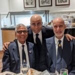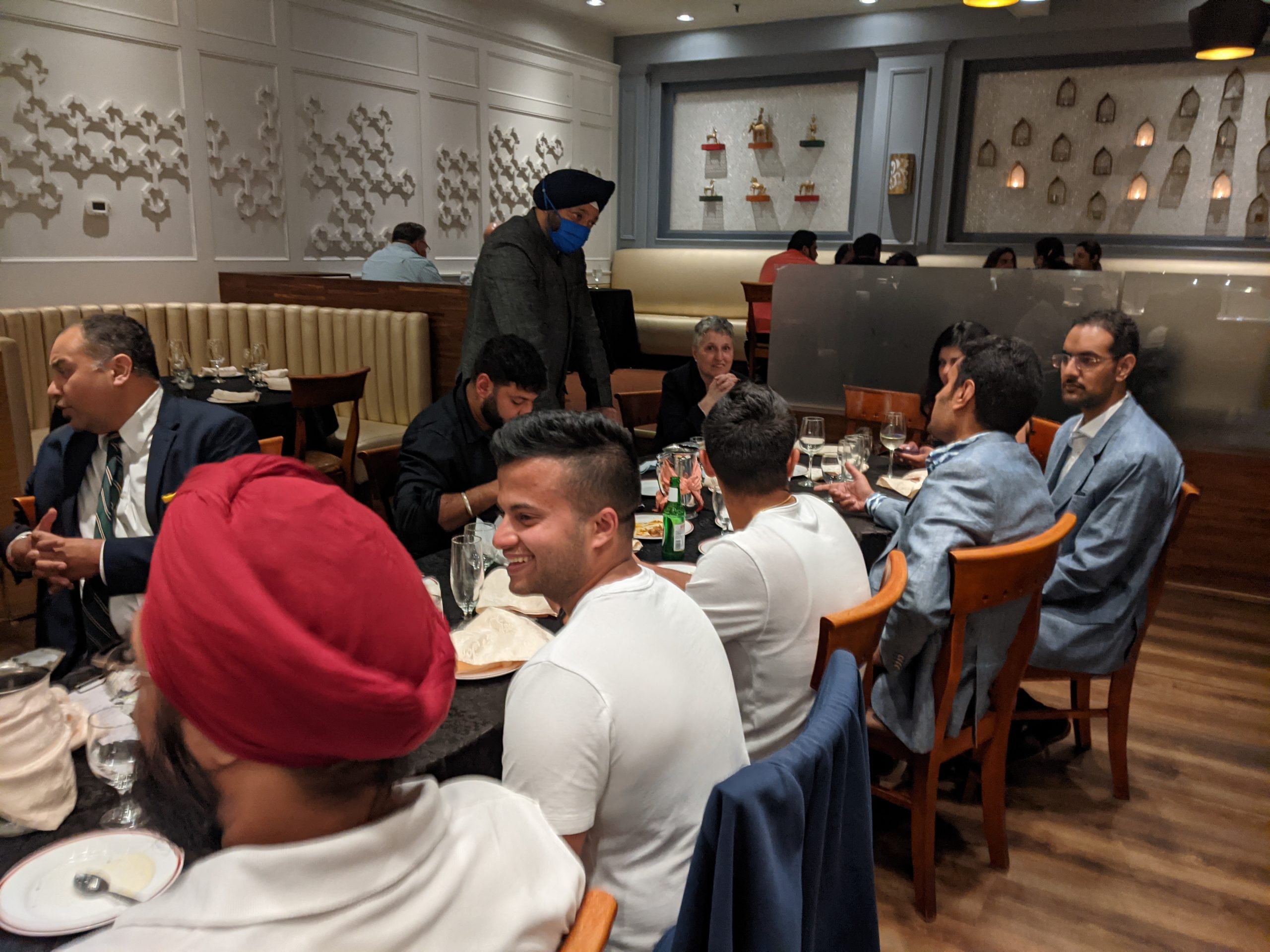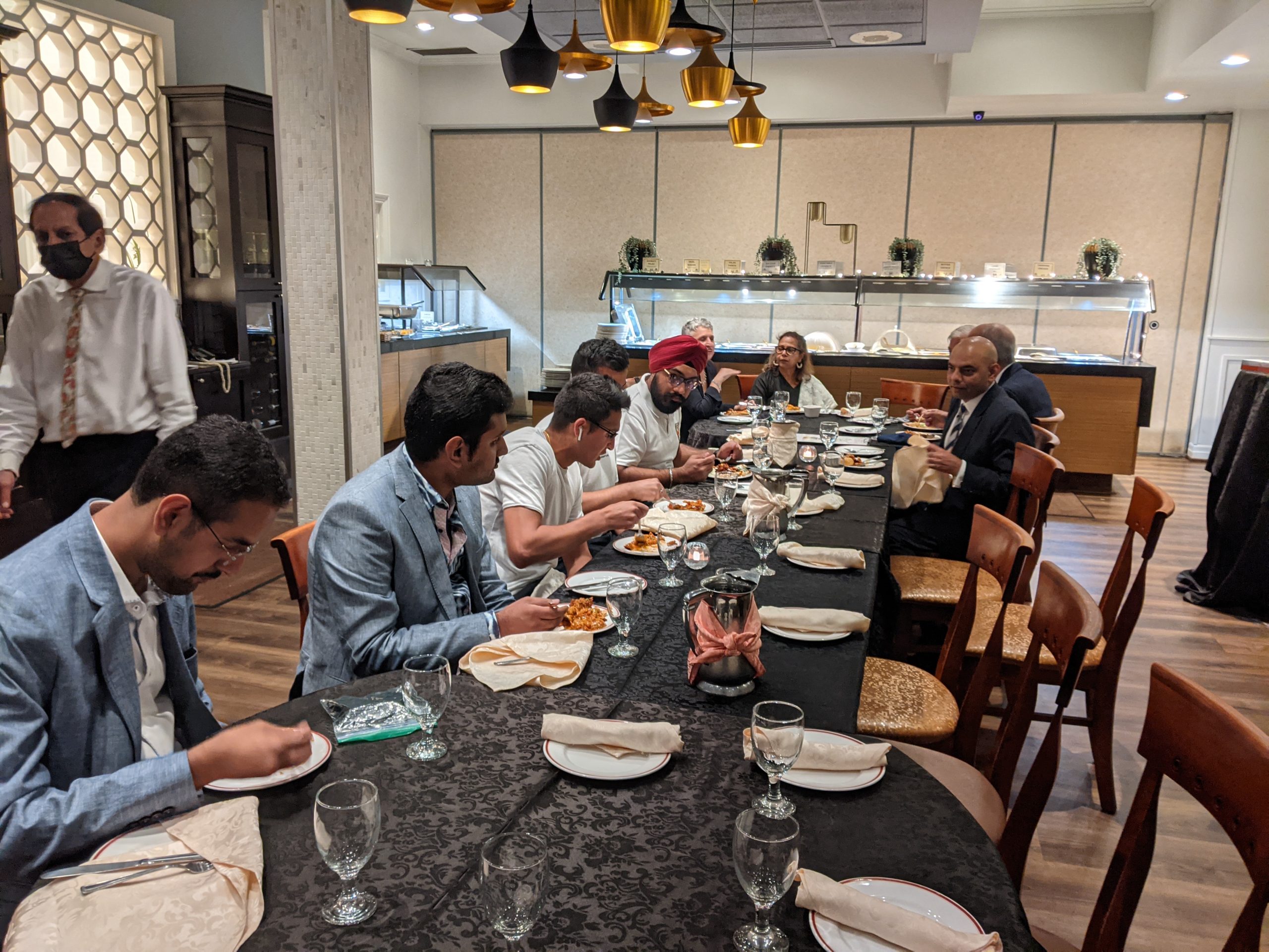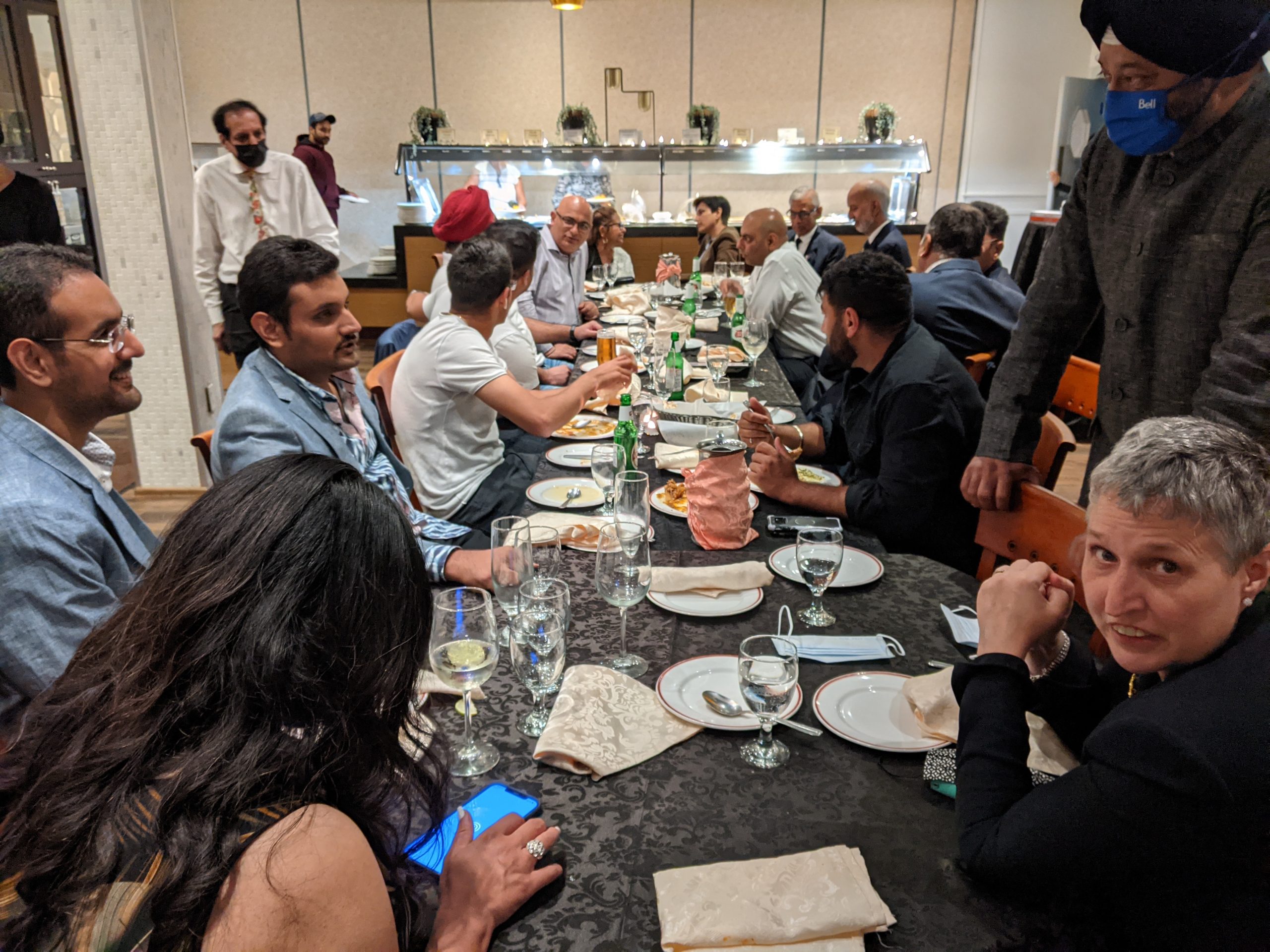 The get-together wasn’t “stag” …the photos show many of the spouses and partners who attended! The listing of names is pretty clear for the group photo…in sequence Left to Right. Jeevan Goyal is in the middle of the photo. Blazer, tie, white shirt. Not bald!