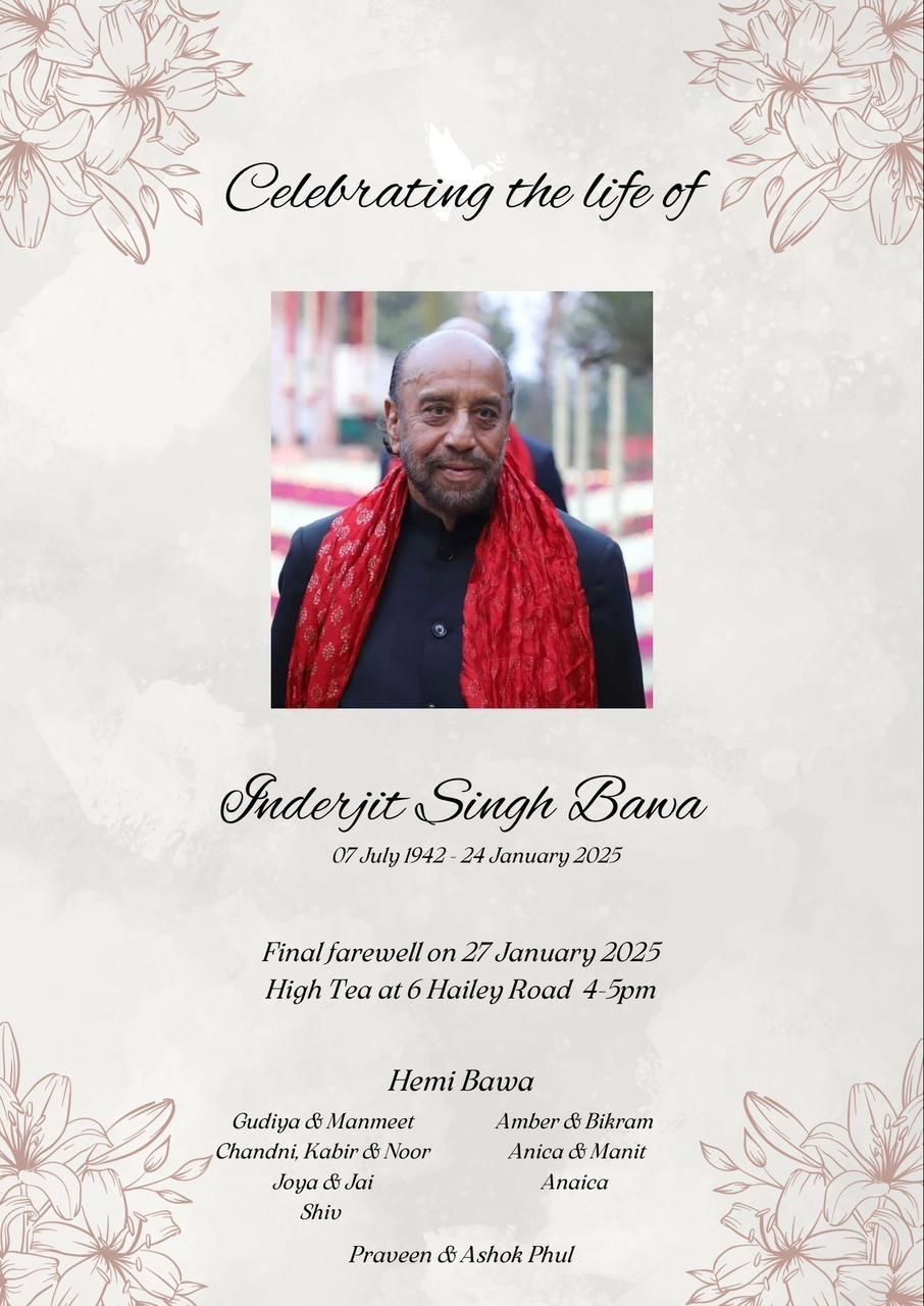 To Inderjit’s family, we send our deep condolences. My husband Behram departed exactly one month before Inderjit and if I remember well, they were good friends in school. If my memory serves me right, his nickname was Kiddo in school?!?!