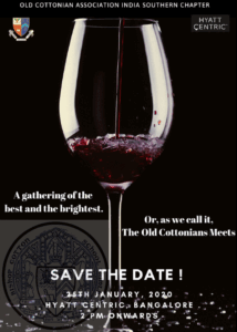 Dear Cottonians, Please note that the first ever Old Cottonians Southern Chapter meet will be held on 25th January 2020 at Hyatt Centric, near Lido
