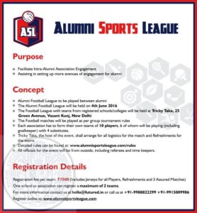 Alumni Sports League is an Intra-Alumni Association Engagement event which aims at establishing a culture of Sports Leagues among alumni in leading schools across the country. Through