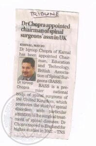 Dr. Iqroop Singh Chopra (Lefroy, 1975 – 1983) currently based in Cardiff (Wales) is making waves as a top Consultant Spinal Surgeon in the UK. In